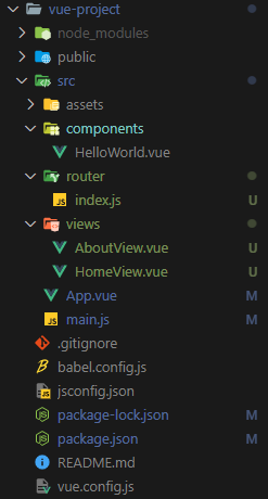 Vue CLI 이용하여 프로젝트 최초 생성 시, src 폴더 밑에 components 폴더가 있다. 그런데 라우터 설정을 위해 vue-router를 추가하면 src 폴더 밑에 views 폴더가 생성되는 것을 확인할 수 있다.