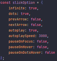 - pauseOnDotsHover: false dot 호버 시 슬라이드 이동 멈춤