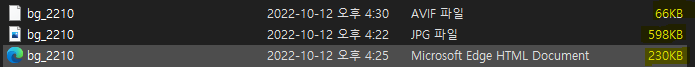 실제로 598KB의 JPG 포맷 이미지를 WebP와 AVIF 포맷으로 변환해 보았다. 확실히 용량 차이가 큰 것을 볼 수 있다.
