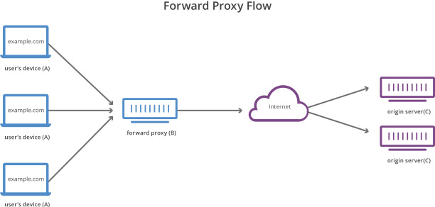 예를 들어, naver.com에 요청하면 포워드 프록시 서버가 naver.com 리소스를 대신 받아 클라이언트에게 내밀어준다(forward)고 생각하면 된다.